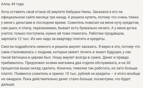 Созданный и заговоренный амулет от бабы Нины отличается от многих талисманов: